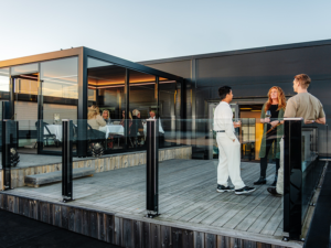 The Lighthouse rooftop terrace, part of the Uni3 by Geely campus and elegantly connected to Clarion Hotel® The Pier, offers a unique setting where design and function come together. Here, parasols from Bahama GmbH together with ClickitUp®, our height-adjustable glass balustrade, create the perfect conditions for weather-protected outdoor events. Visitors…
